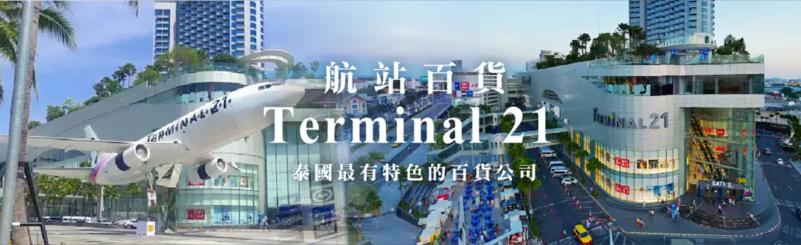 【芭達雅航站購物百貨 Terminal 21 Pattaya】位於北芭提雅區,建築外觀以大型飛機造型設計,整棟大樓以「機場航站」為概念打造,為曼谷 Terminal 21 的全新分館。館內每層樓以不同國家城市主題呈現,從手扶電梯到洗手間都精心設計,並有誇張裝置藝術,如行李箱堆成的小山,成為熱門打卡景點,兼具購物與拍照樂趣。