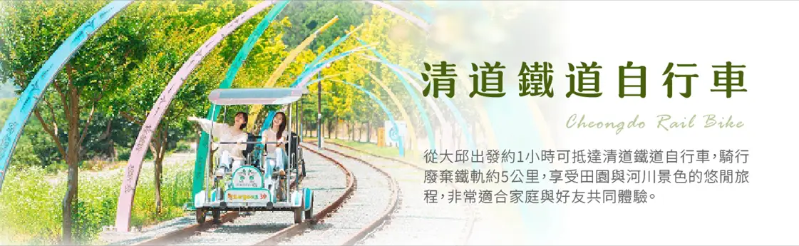 【鐵軌腳踏車】清道鐵軌腳踏車,穿越美麗的鄉間景色,感受大自然的氣息。沿途有種植觀賞樹木,出發的地方就是櫻花,搭配小風車與田園風景,感覺很浪漫、療癒。